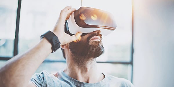 Virtual reality (VR) replaces the real world with a simulated one in 3D, transforming a 2D design into an interactive, immersive digital model.