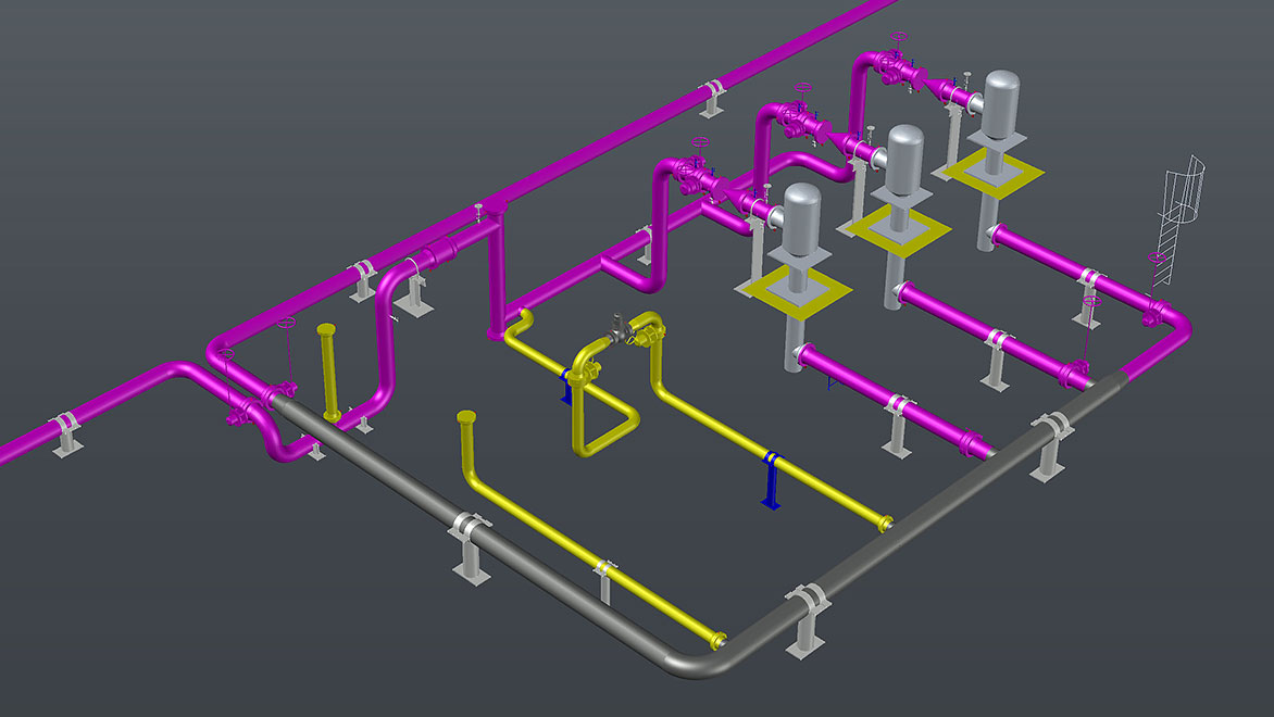 • Creation and modification of spec-driven 3D piping, equipment, and structures