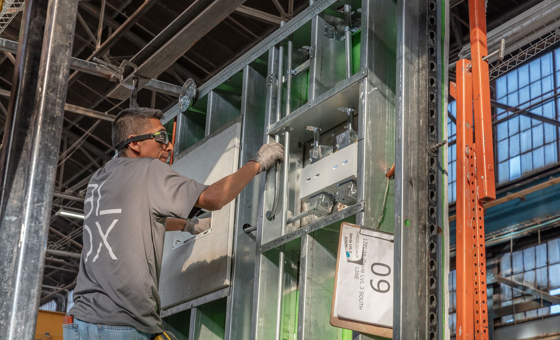Software and data analytics have been the key to developing a DMC operation. BLOX is a longtime user of Revit to design its building components. The next step was to integrate the digital designs with the manufacturing process on the factory floor, via a cloud-based data-management system. “We’re going from model to fabrication, and we’re doing it systematically,” Giattina says. “We’ve developed a platform called WEVR that uses our own software development with Forge and BIM 360.”