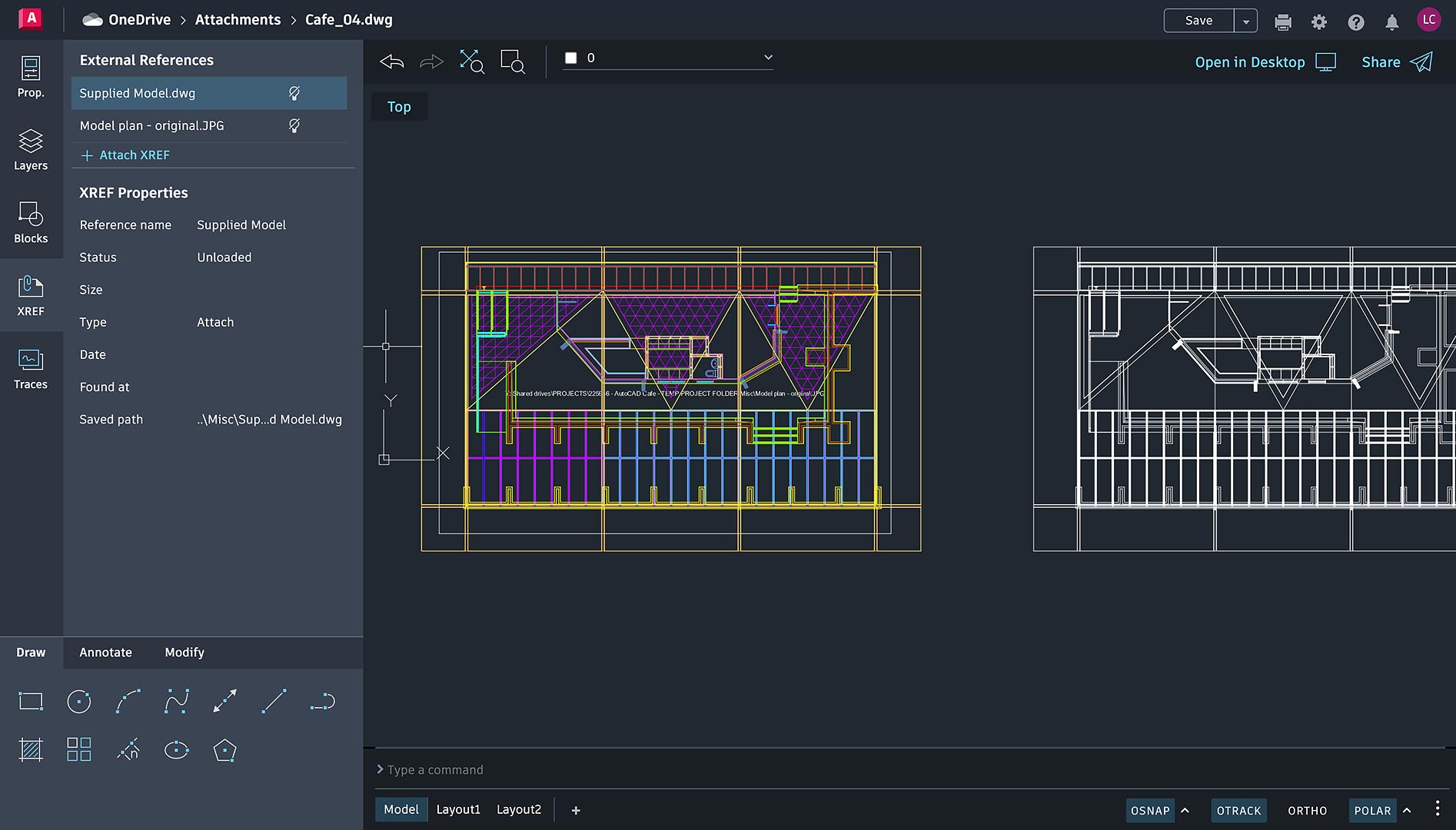 Display xrefs, such as images and DWG files referenced in your drawing, from the web.