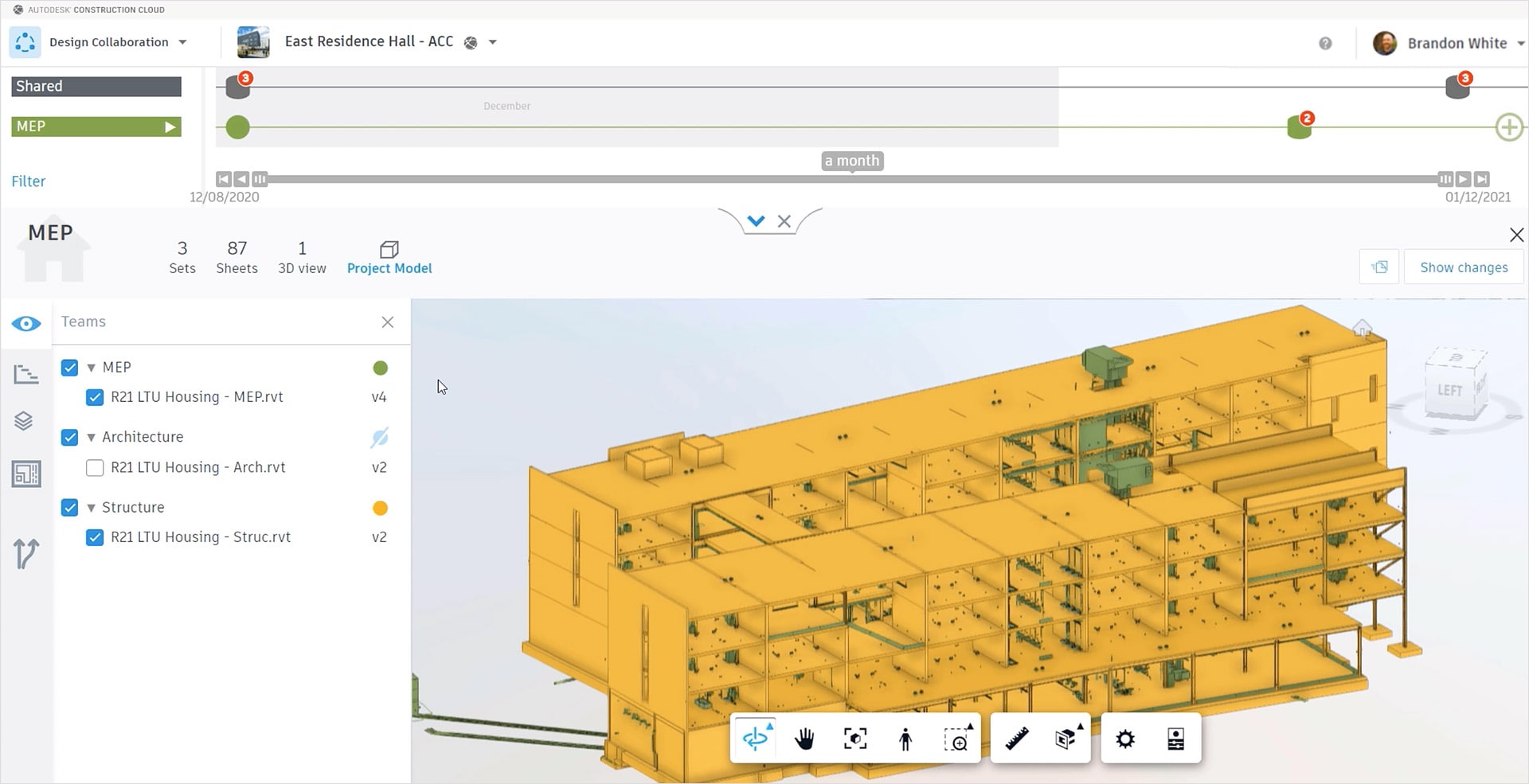 Design leads can use the timeline view to easily see dates and view contents of shared design packages and data, as well as create and consume packages on multidiscipline projects using one interface.