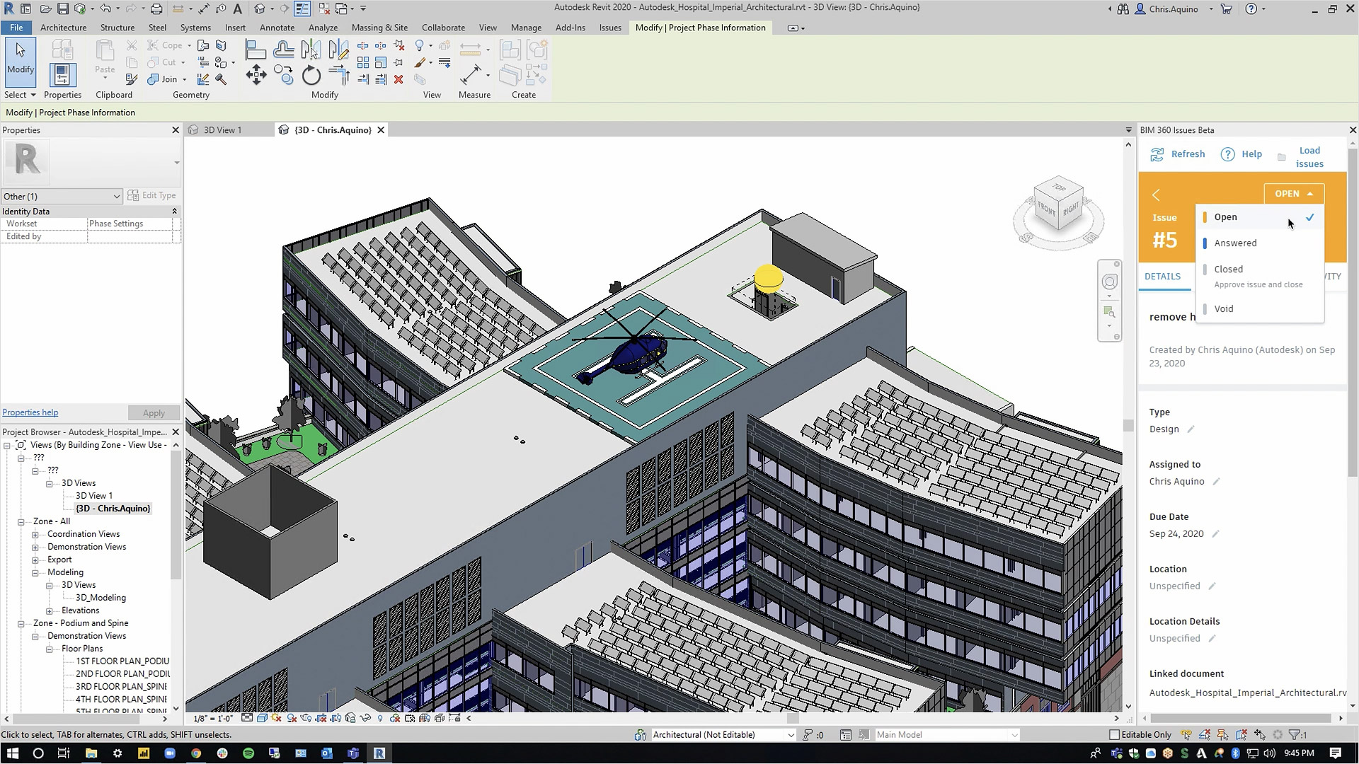 Easily identify and assign issues on a design for fast resolution. Use the issues add-ins to resolve issues assigned to you from the cloud directly in Revit or Navisworks for closed loop workflows.