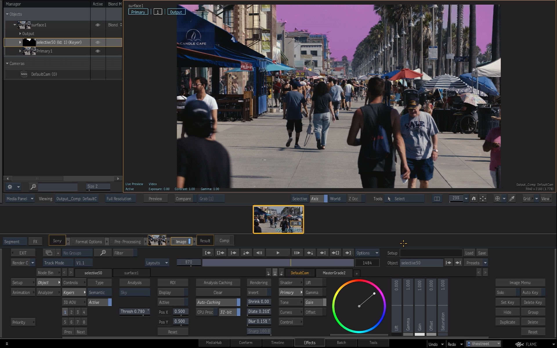 Apply color and effects in an integrated environment connected to Tangent colorist control panels.