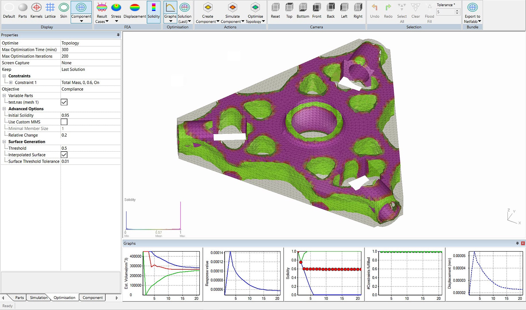 Automatically verify and optimize lattice and skin elements to meet load requirements and reduce weight.
