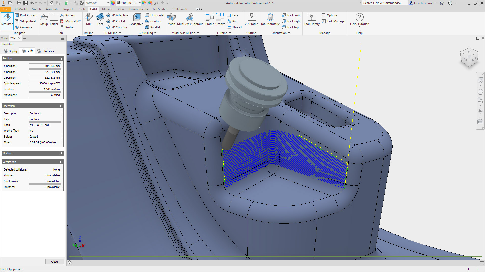 Toolpaths update automatically as changes are made to the 3D model in Inventor.