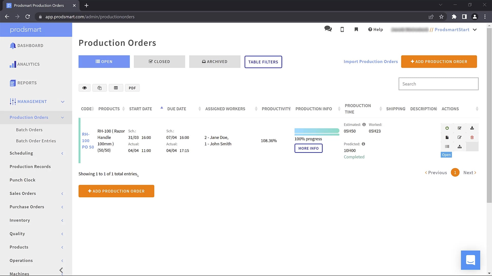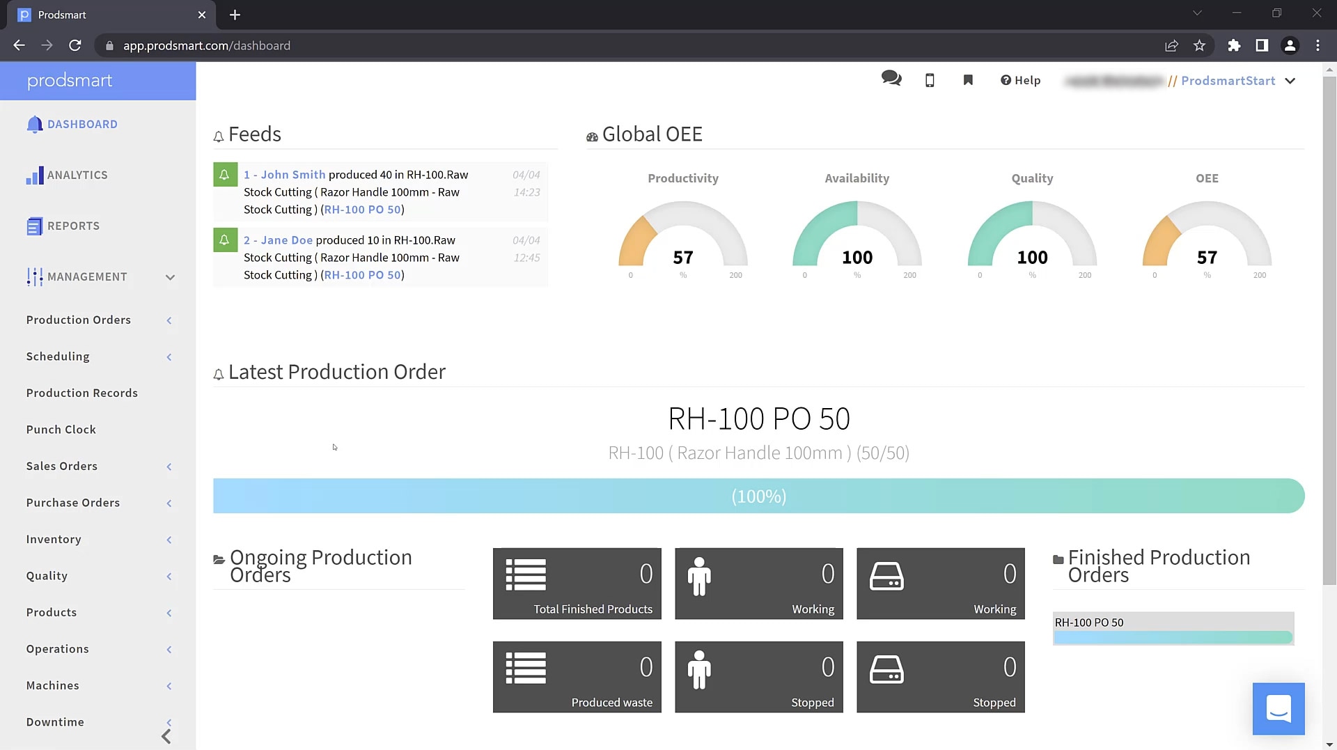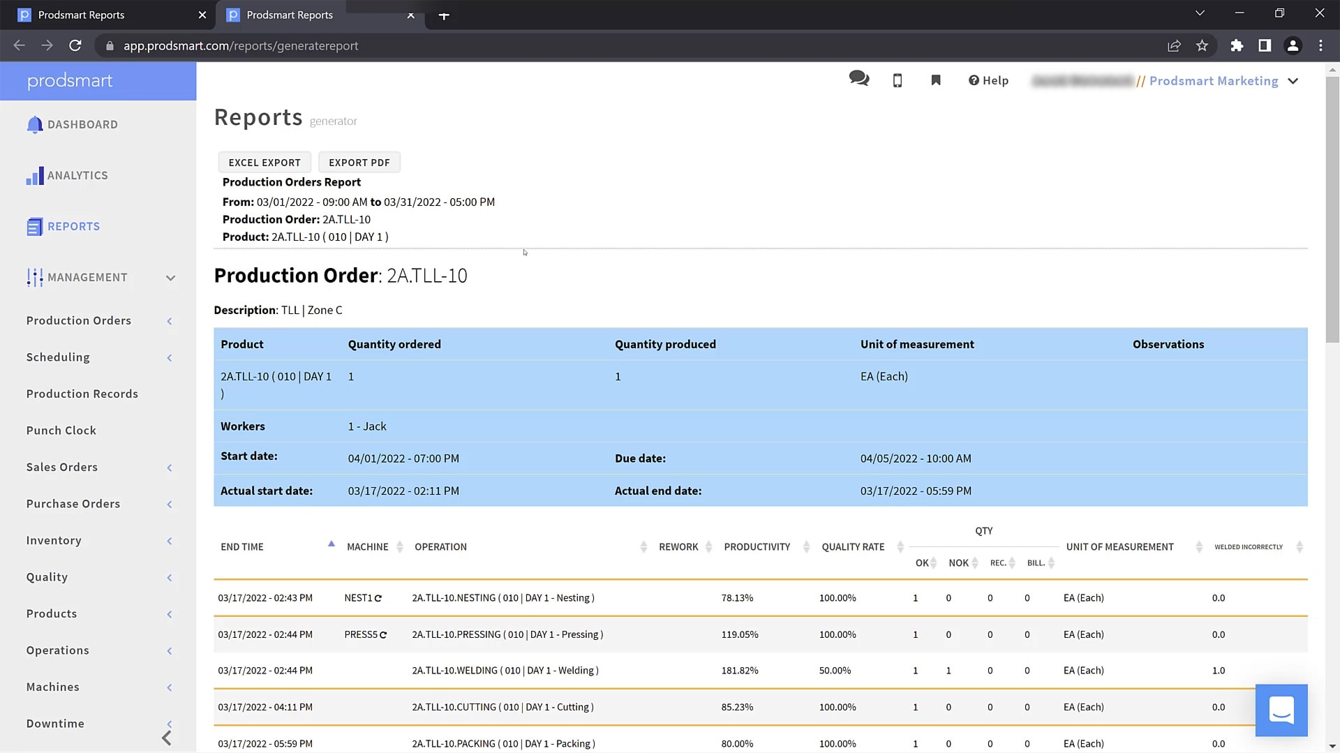 Prodsmart provides manufacturers and fabricators, from small to large-scale, the power to manage every aspect of their production floor. You can use it to get insights into your production flow, identify where waste occurs, predict maintenance, and keep on top of employee performance.