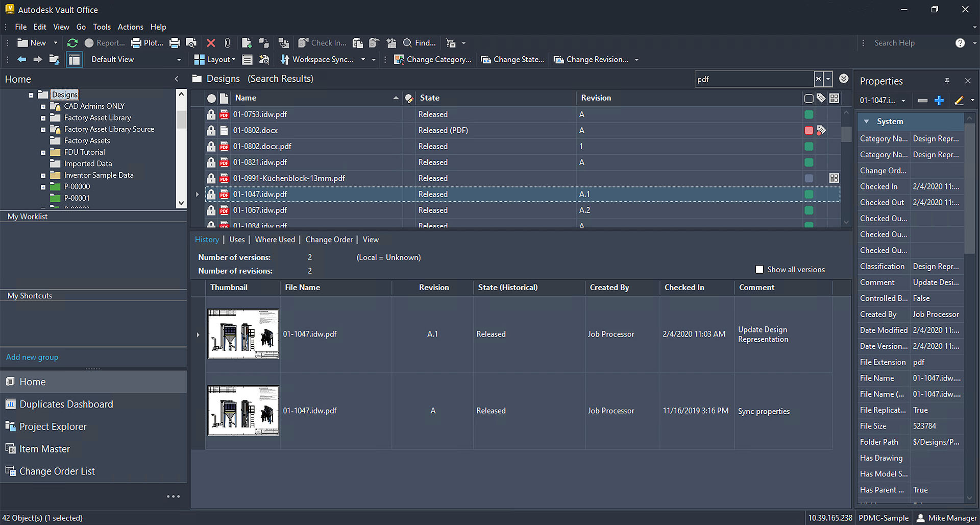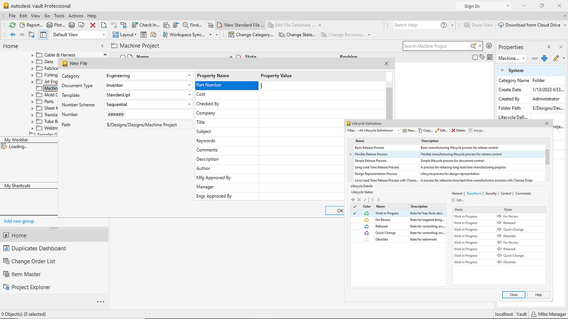 Design file management to help you automate data creation and organize documentation. Available only with a subscription to the Autodesk Product Design & Manufacturing Collection.