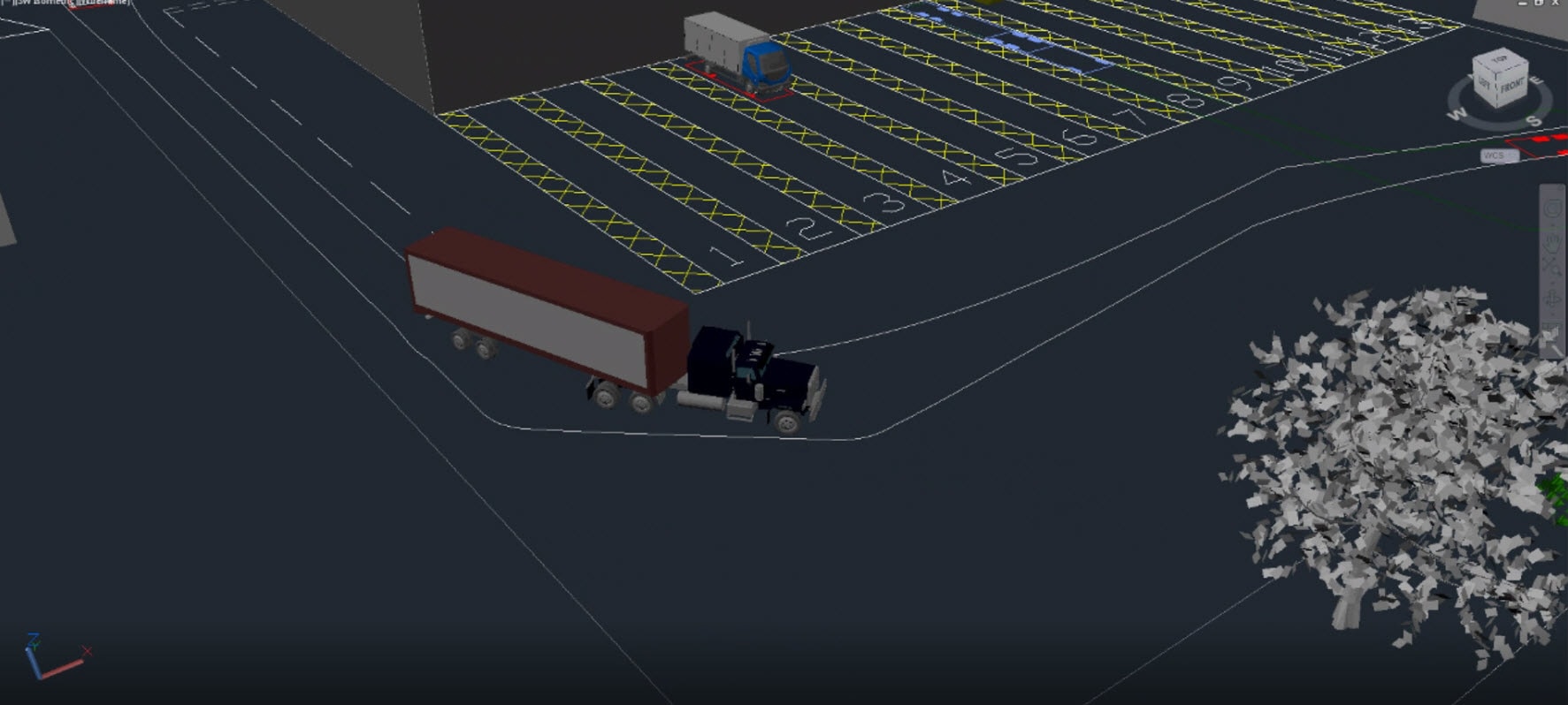 Vehicle Tracking is a suite of transportation-related programs that includes vehicle swept path prediction for steered vehicles, light rail vehicles, and aircraft, as well as parking layout design and roundabout design.