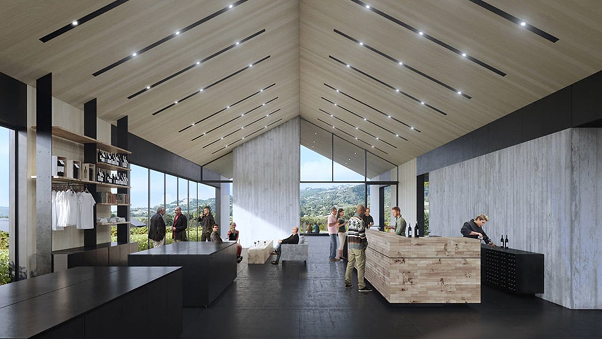 A rendering of the tasting room in Silver Oak’s new Alexander Valley winery. Courtesy of Silver Oak Cellars.